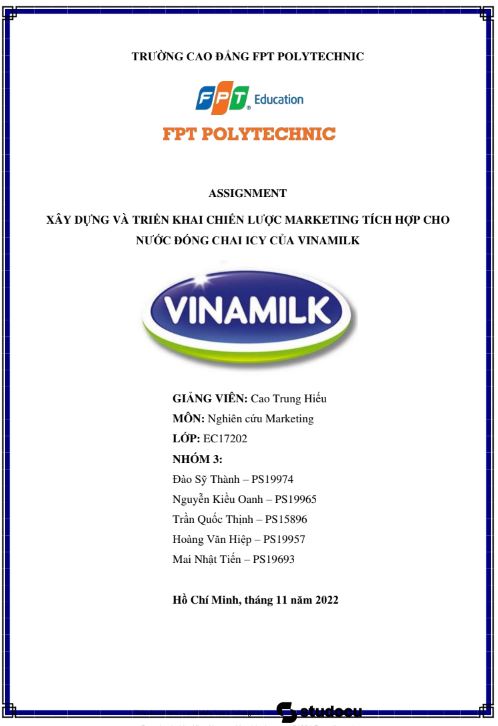 1. Xây Dựng Chiến Lược Marketing Tích Hợp Cho Nước Uống Đóng Chai ICY Vinamilk